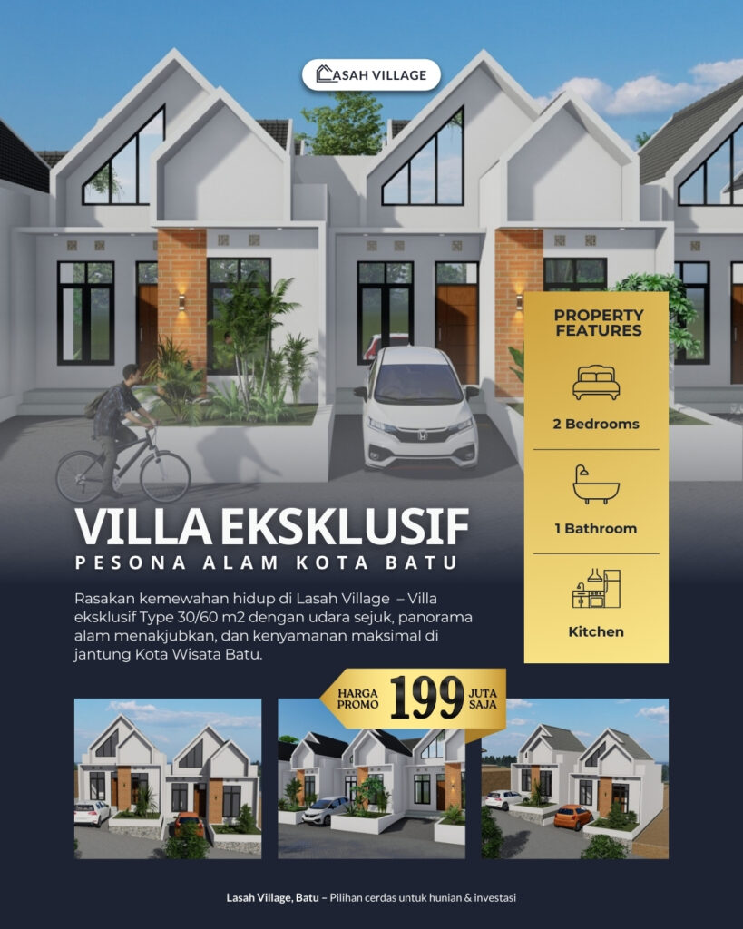 Properti berada di lokasi strategis seperti dekat Jatim Park, Batu Love Garden, Skyland Malang, Polresta Batu, Pasar Karangploso.